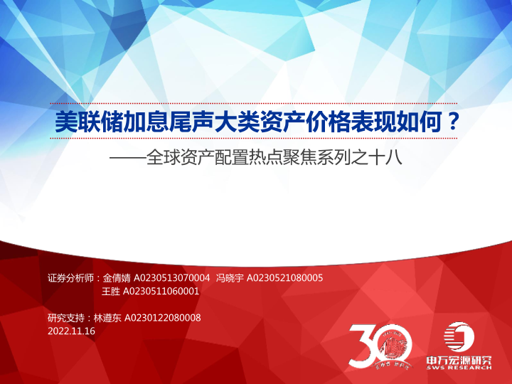 【申万宏源】【20221116】全球资产配置热点聚焦系列之十八:美联储加息尾声大类资产价格表现如何?-17页