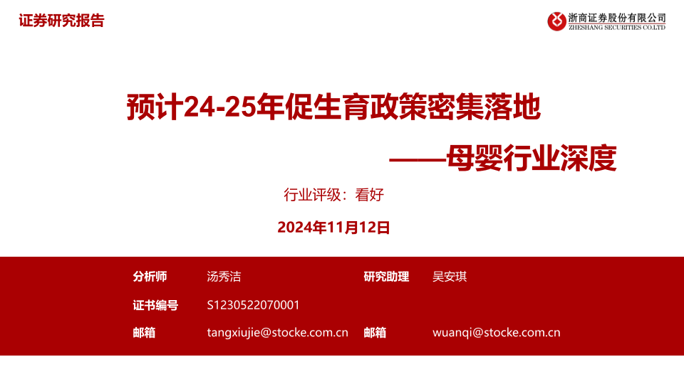 【浙商证券】【20241112】预计24-25年促生育政策密集落地-30页