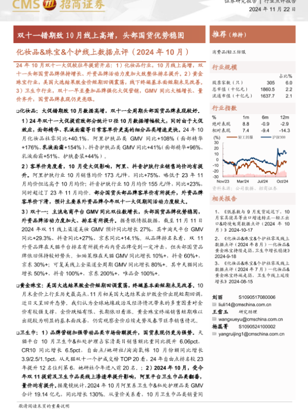 【海通证券】【20241122】化妆品&珠宝&个护线上数据点评-20页