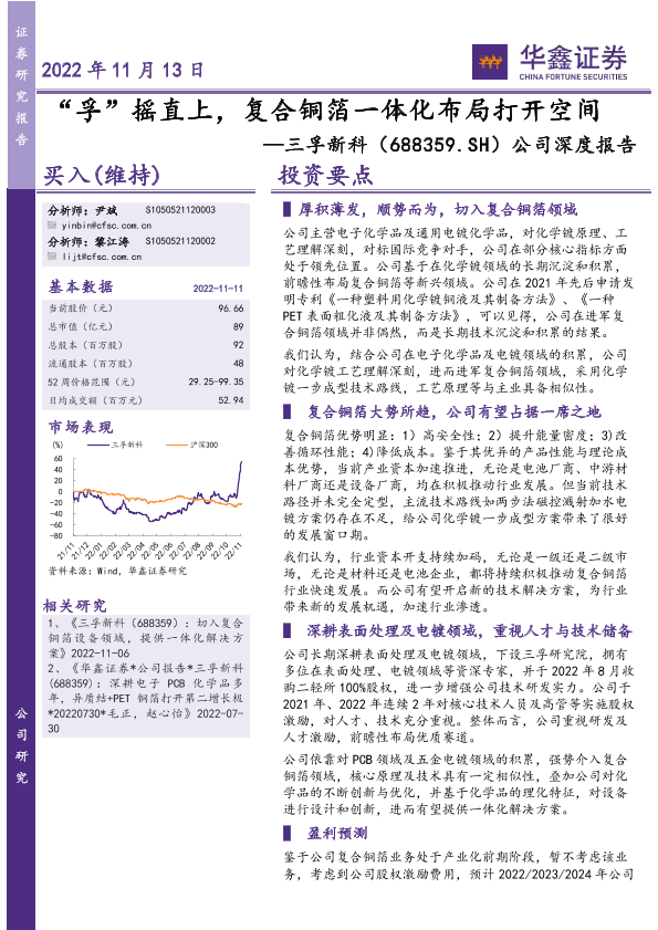 【华鑫证券】【20221113】公司深度报告:“孚”摇直上,复合铜箔一体化布局打开空间-26页