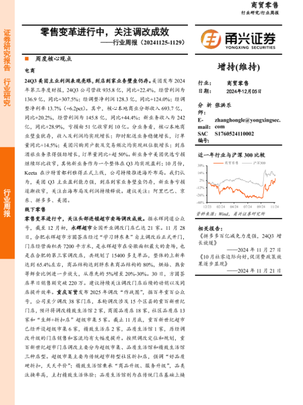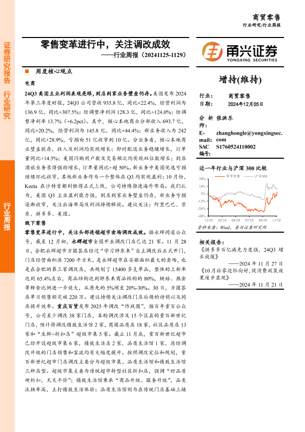 【甬兴证券】【20241205】商贸零售行业周报:零售变革进行中,关注调改成效-11页