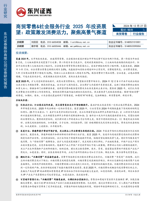 【东兴证券】【20241227】商贸零售&社会服务行业2025年投资展望:政策激发消费活力,聚焦高景气赛道-21页
