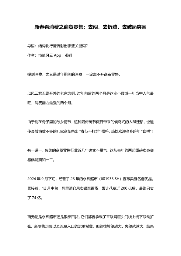 【市值风云】【20250123】新春看消费之商贸零售:去闯,去折腾,去破局突围-22页