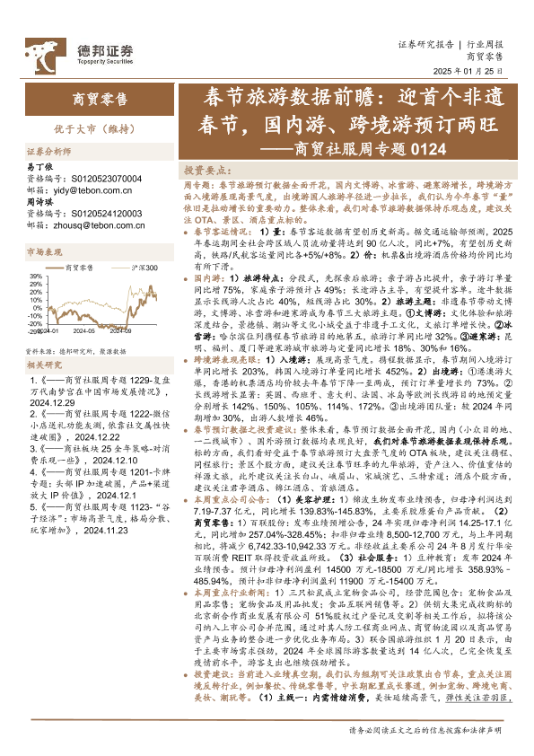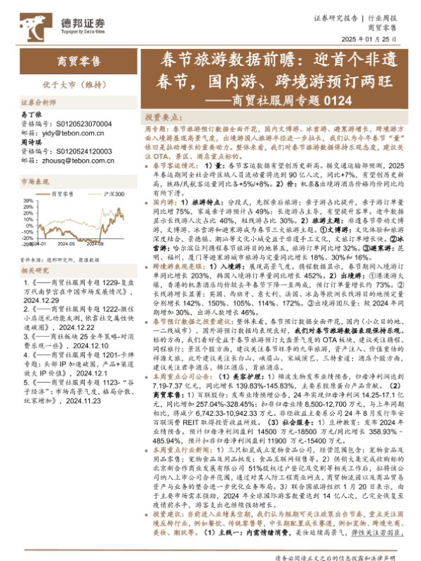 【德邦证券】【20250125】春节旅游数据前瞻:迎首个非遗春节,国内游、跨境游预订两旺-10页