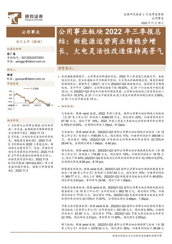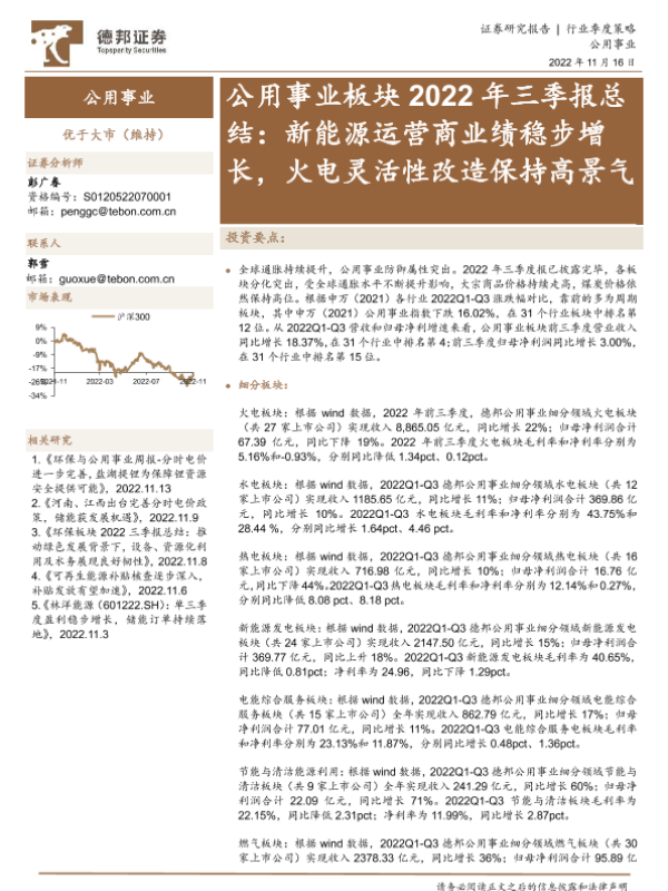 【德邦证券】【20221116】公用事业板块2022年三季报总结:新能源运营商业绩稳步增长,火电灵活性改造保持高景气-25页