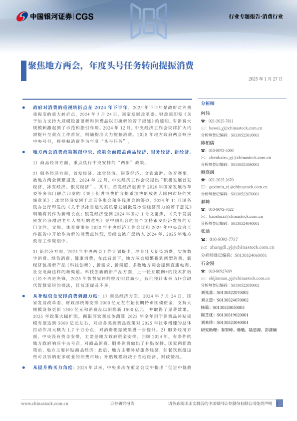 【银河证券】【20250127】消费行业行业专题报告:聚焦地方两会,年度头号任务转向提振消费-25页