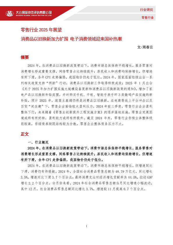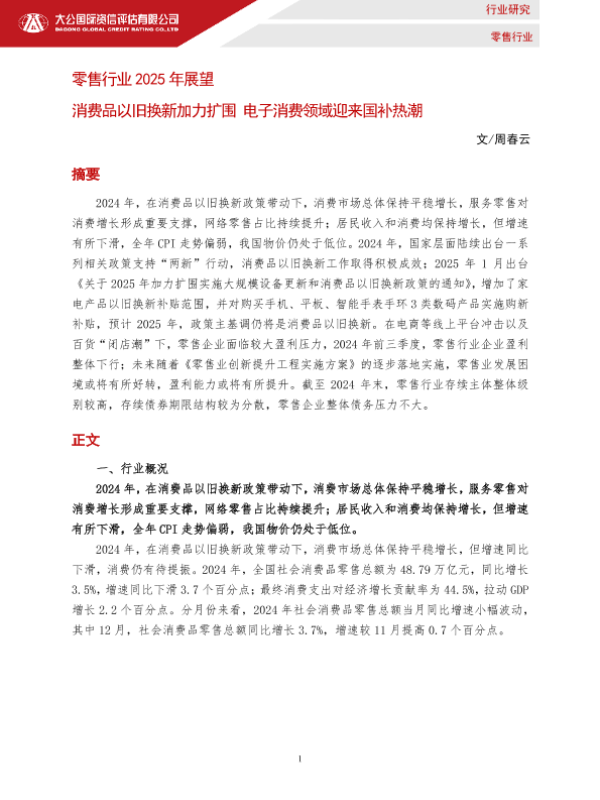 【大公国际】【20250210】零售行业2025年展望:消费品以旧换新加力扩围 电子消费领域迎来国补热潮-12页