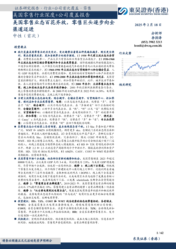 【东吴证券(香港)】【20250218】美国零售行业深度+公司覆盖报告:美国零售业态百花齐放,零售巨头逐步向全渠道迈进-62页