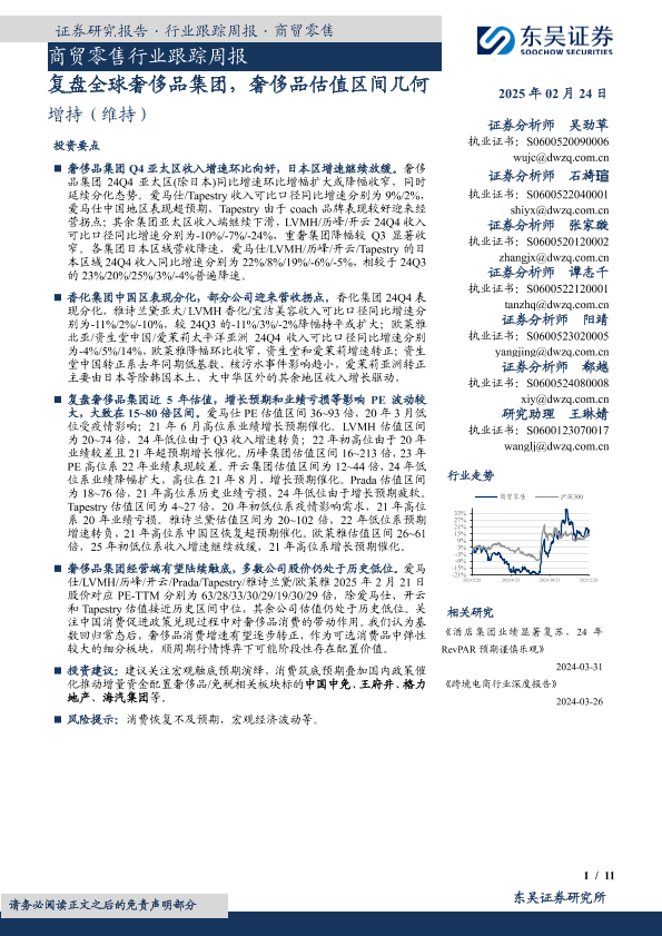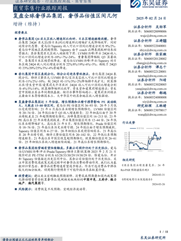 【东吴证券】【20250224】商贸零售行业跟踪周报:复盘全球奢侈品集团,奢侈品估值区间几何-11页