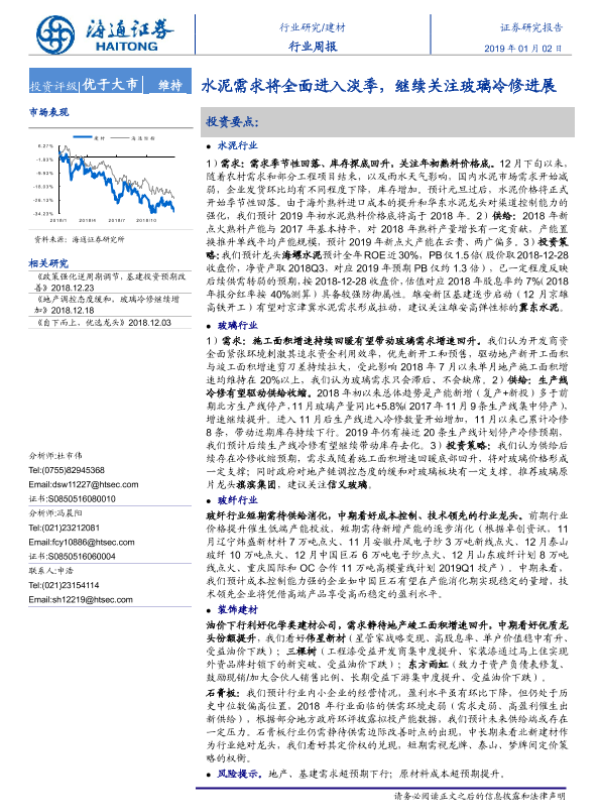 【海通证券】【20190102】建材行业周报:水泥需求将全面进入淡季,继续关注玻璃冷修进展-19页