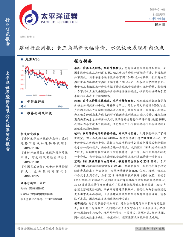 【太平洋证券】【20190106】建材行业周报:长三角熟料大幅降价,水泥板块或现年内低点-16页