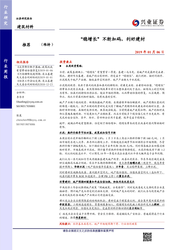 【兴业证券】【20190106】建筑材料行业周报:“稳增长”不断加码,利好建材-16页