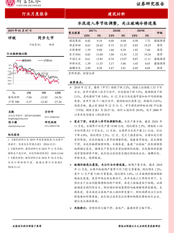 【财信证券】【20190107】建筑材料行业月度报告:水泥进入季节性调整,关注玻璃冷修进展-9页