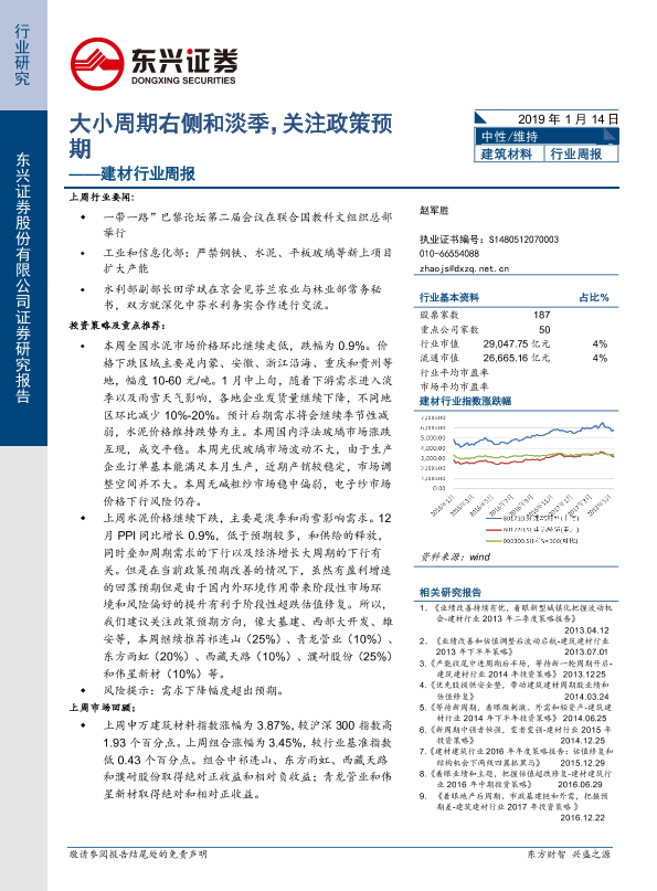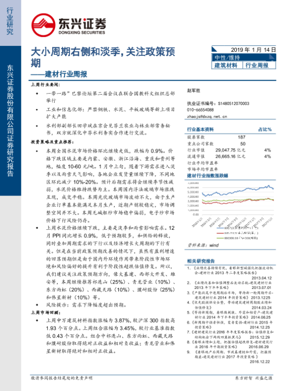 【东兴证券】【20190114】建材行业周报:大小周期右侧和淡季,关注政策预期-24页