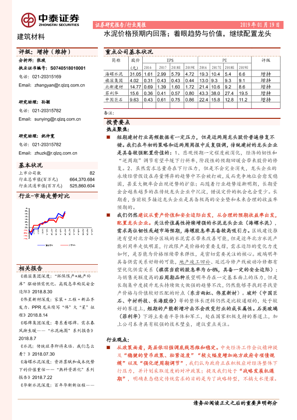 【中泰证券】【20190119】建筑材料行业周报:水泥价格预期内回落;着眼趋势与价值,继续配置龙头-17页
