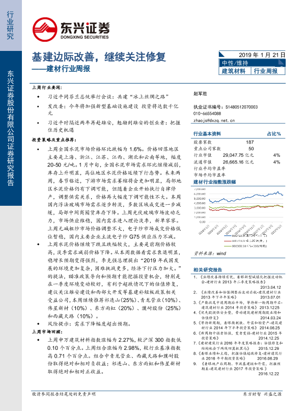 【东兴证券】【20190121】建材行业周报:基建边际改善,继续关注修复-24页