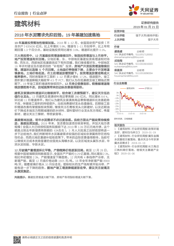 【天风证券】【20190121】2018年水泥需求先抑后扬,19年基建加速落地-6页