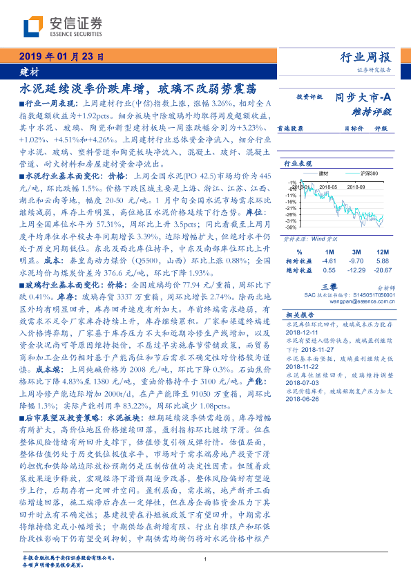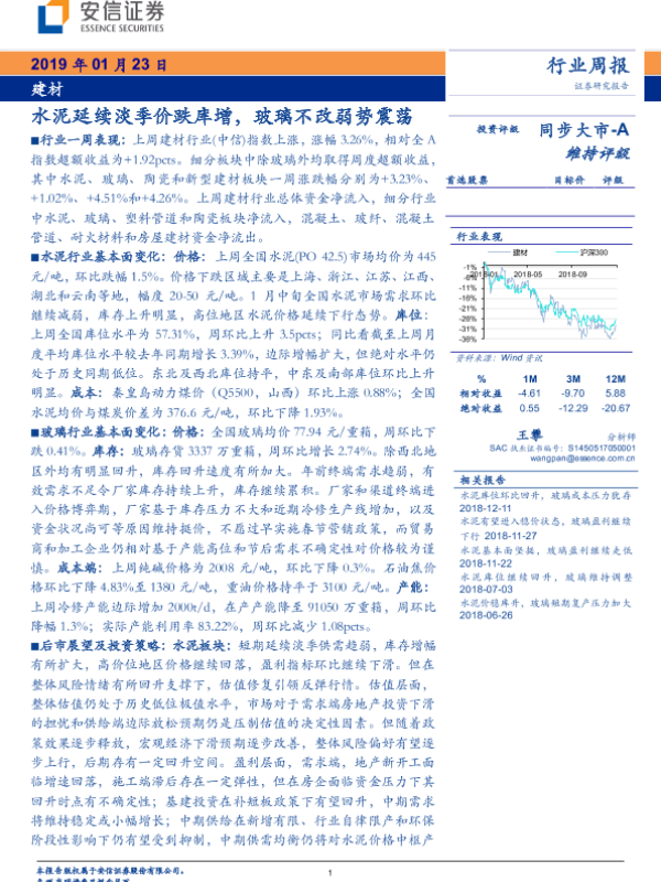【安信证券】【20190123】建材行业周报:水泥延续淡季价跌库增,玻璃不改弱势震荡-25页