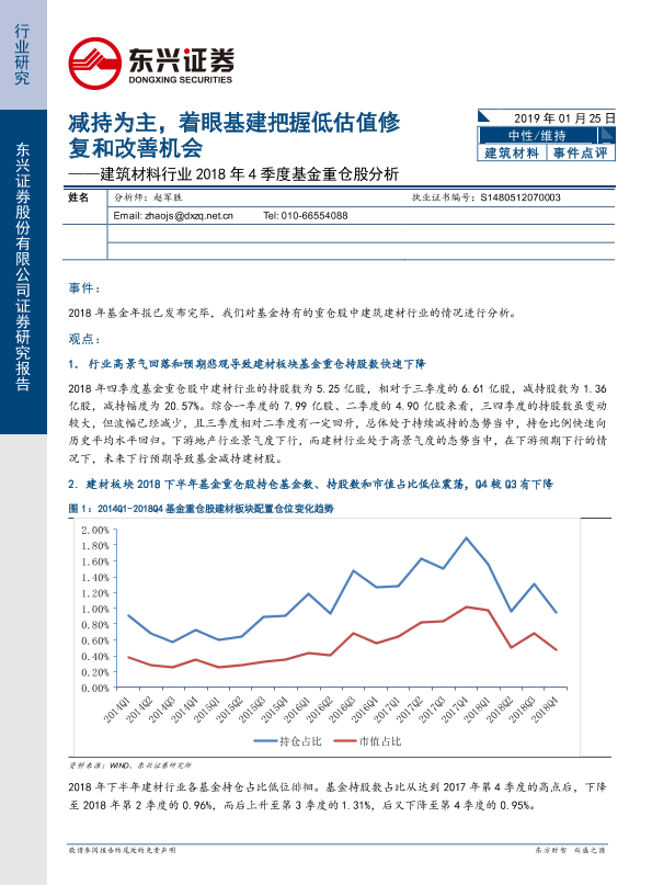 【东兴证券】【20190125】建筑材料行业2018年4季度基金重仓股分析:减持为主,着眼基建把握低估值修复和改善机会-5页