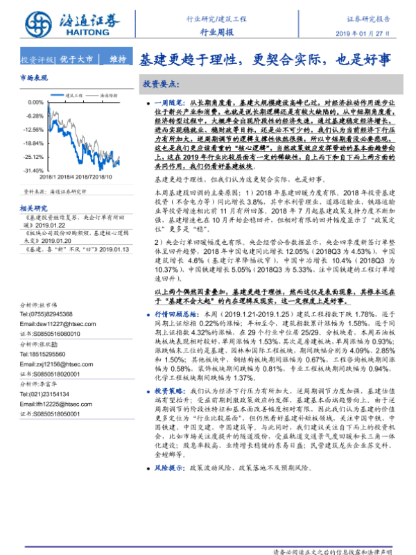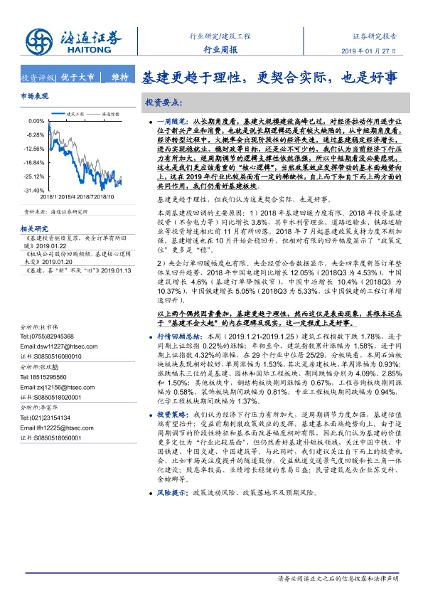 【海通证券】【20190127】建筑工程行业周报:基建更趋于理性,更契合实际,也是好事-8页