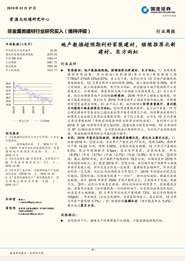 【国金证券】【20190127】非金属类建材行业周报:地产数据超预期利好家装建材,继续推荐北新建材、东方雨虹-20页