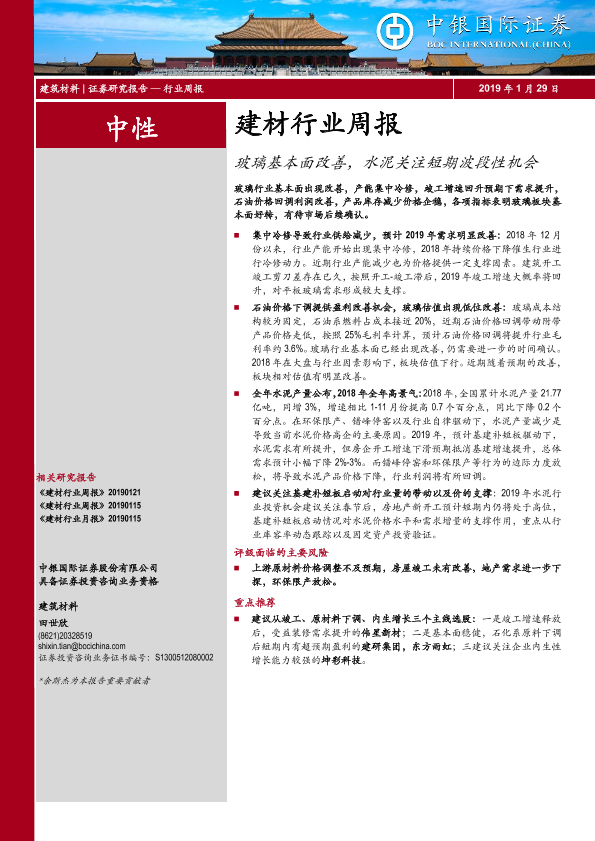 【中银证券】【20190129】玻璃基本面改善,水泥关注短期波段性机会-14页