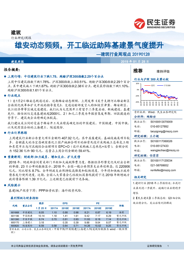 【民生证券】【20190128】建筑行业周观点:雄安动态频频,开工临近助阵基建景气度提升-15页