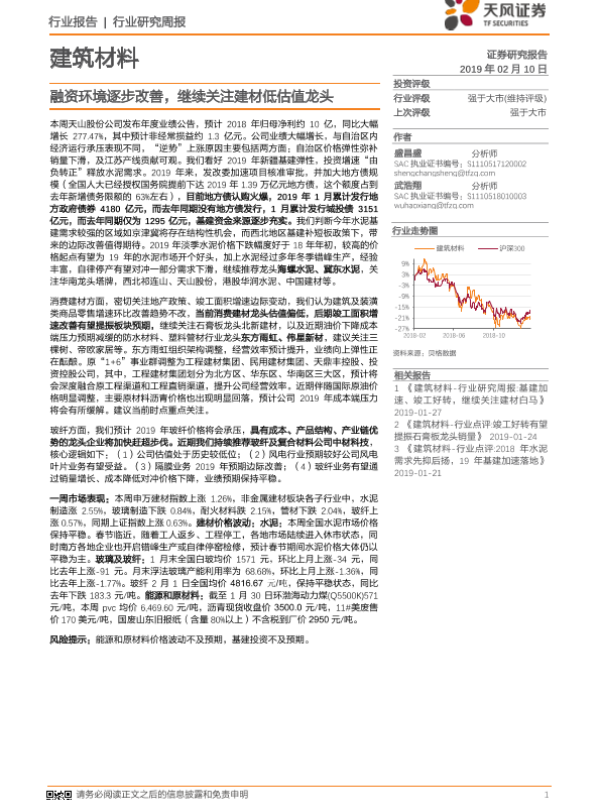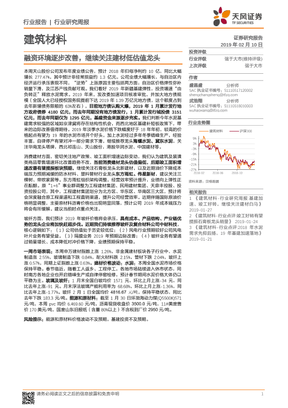 【天风证券】【20190210】建筑材料行业研究周报:融资环境逐步改善,继续关注建材低估值龙头-11页