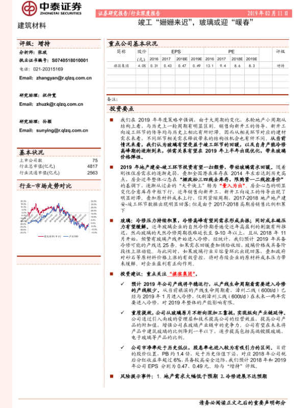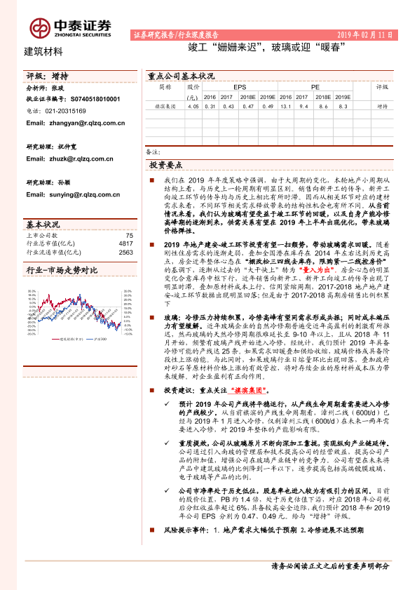 【中泰证券】【20190211】建筑材料行业深度报告:竣工“姗姗来迟”,玻璃或迎“暖春”-16页