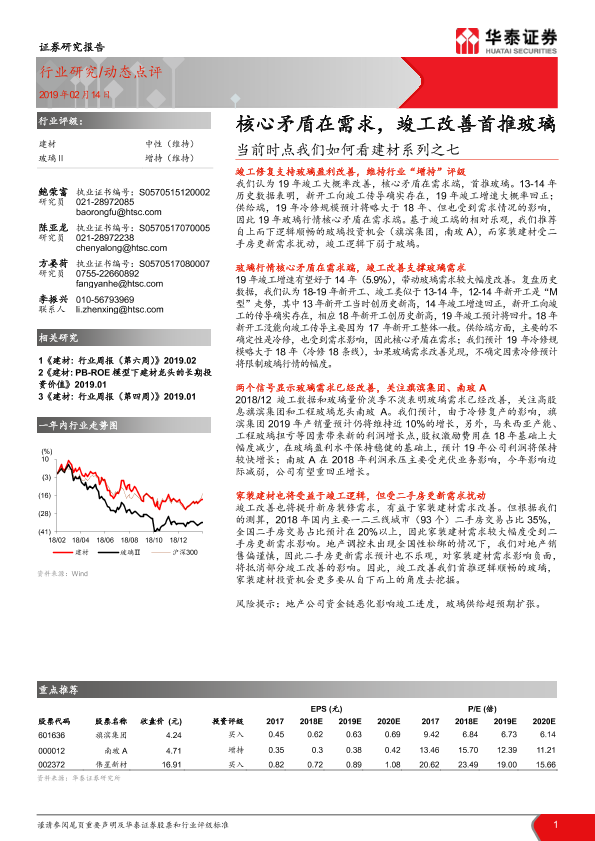 【华泰证券】【20190214】当前时点我们如何看建材系列之七:核心矛盾在需求,竣工改善首推玻璃-10页