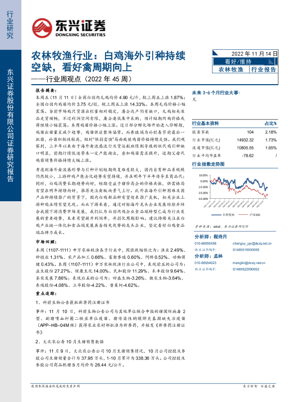 【东兴证券】【20221114】农林牧渔行业周观点(2022年45周):白鸡海外引种持续空缺,看好禽周期向上-14页