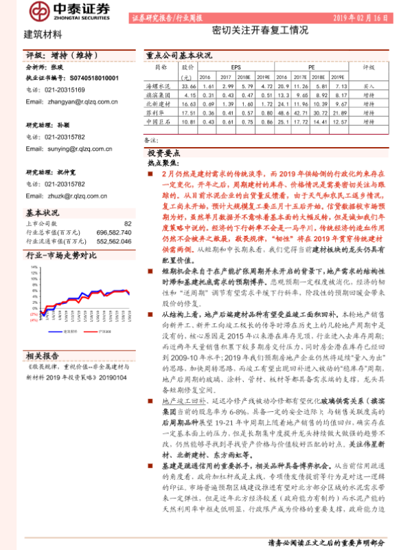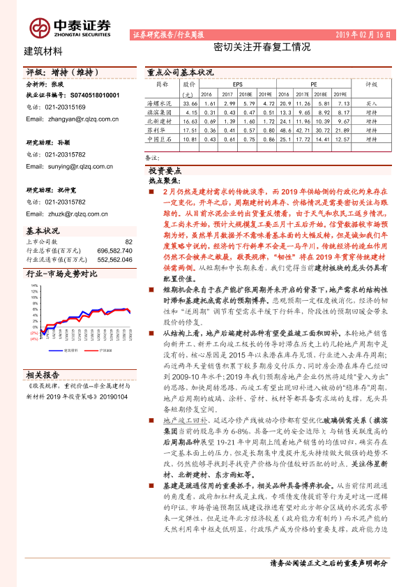 【中泰证券】【20190216】建筑材料行业周报:密切关注开春复工情况-19页