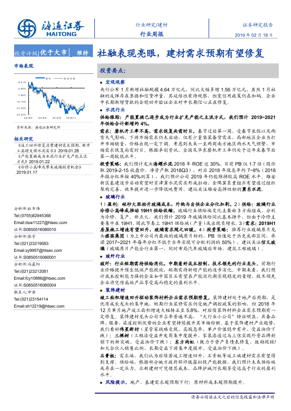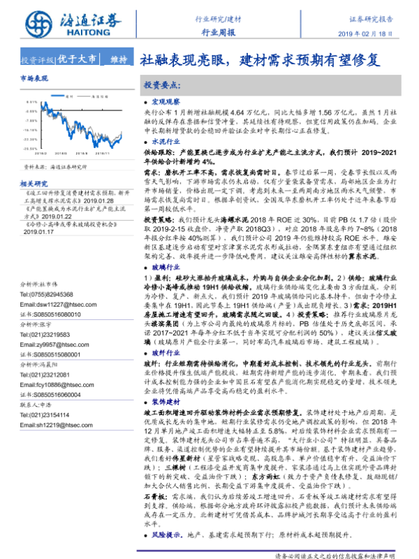 【海通证券】【20190218】建材行业周报:社融表现亮眼,建材需求预期有望修复-18页