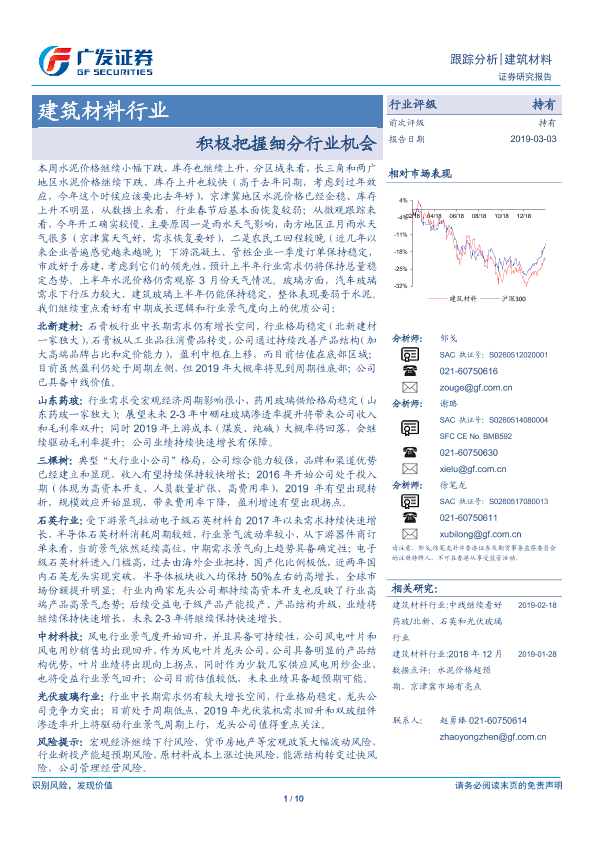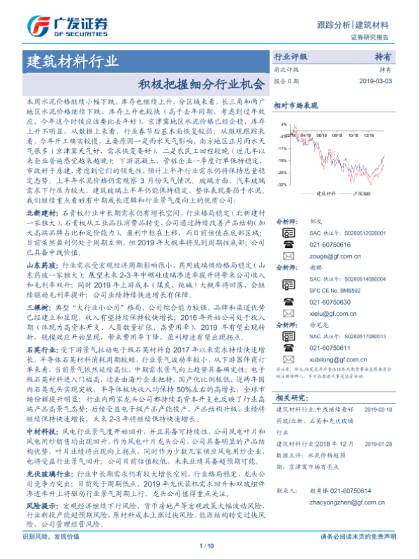 【广发证券】【20190303】建筑材料行业跟踪分析:积极把握细分行业机会-10页
