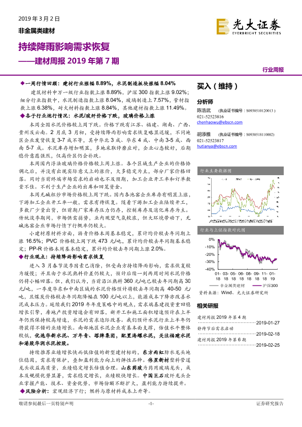 【光大证券】【20190302】建材周报2019年第7期:持续降雨影响需求恢复-17页