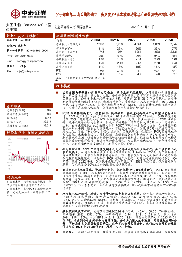 【中泰证券】【20221115】分子诊断第二成长曲线确立,高速发光+流水线驱动常规产品恢复快速增长趋势-20页