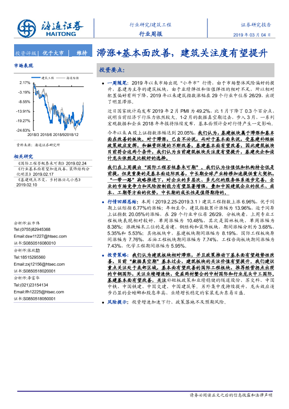 【海通证券】【20190304】建筑工程行业周报:滞涨+基本面改善,建筑关注度有望提升-8页