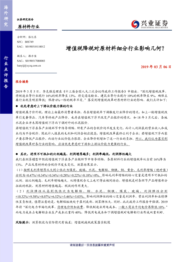 【兴业证券】【20190306】增值税降税对原材料细分行业影响几何?-4页