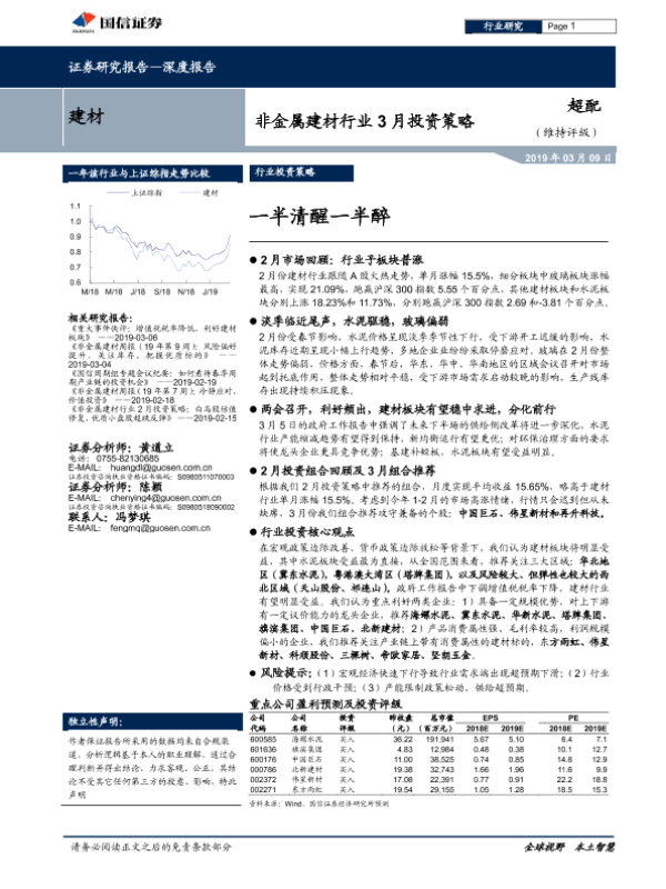 【国信证券】【20190309】非金属建材行业3月投资策略:一半清醒一半醉-19页