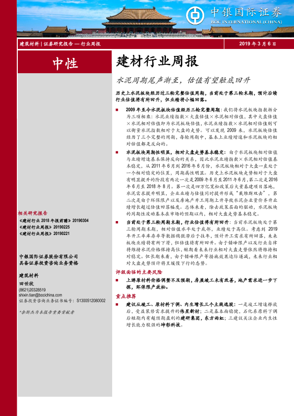 【中银证券】【20190306】水泥周期尾声渐至,估值有望触底回升-14页