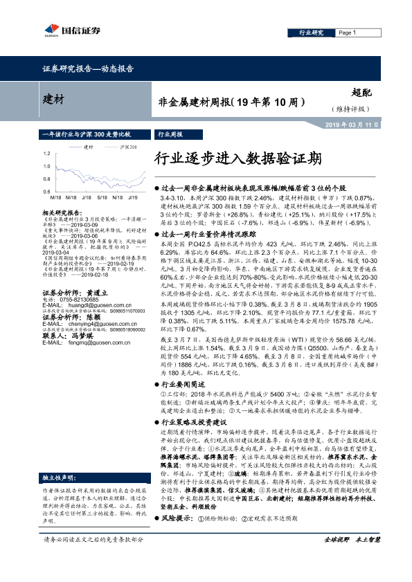 【国信证券】【20190311】非金属建材周报:行业逐步进入数据验证期-15页