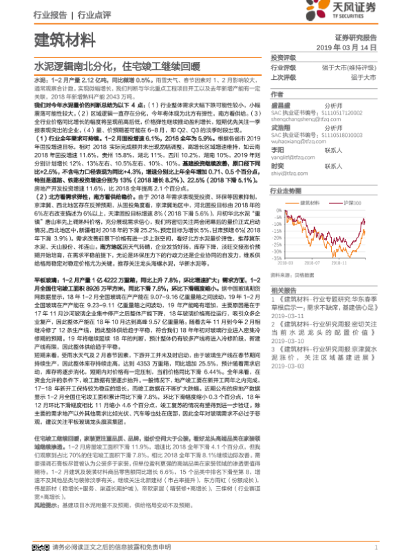 【天风证券】【20190314】水泥逻辑南北分化,住宅竣工继续回暖-4页