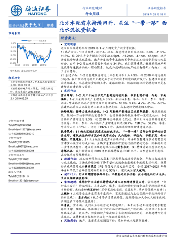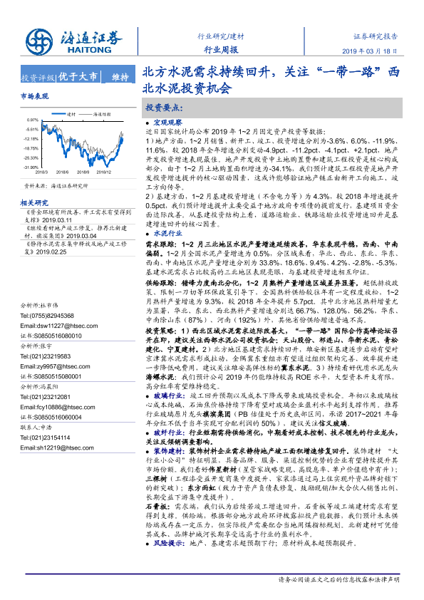 【海通证券】【20190318】建材行业周报:北方水泥需求持续回升,关注“一带一路”西北水泥投资机会-7页