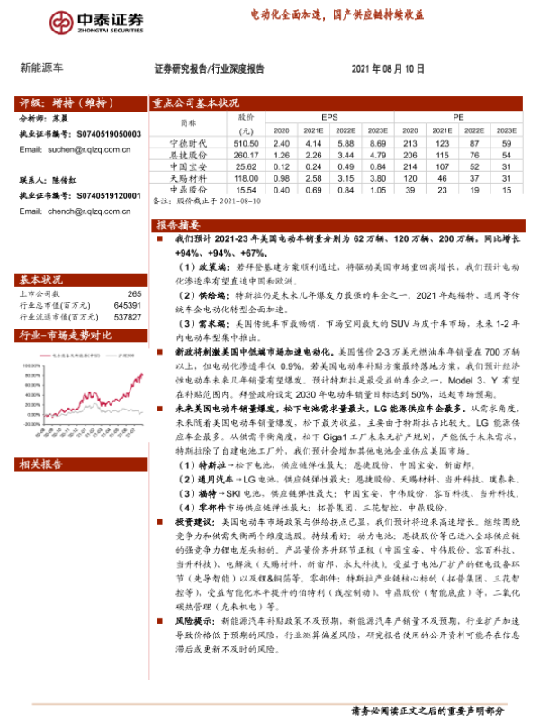 供应链 投资分析 新能源车 电动化 美国市场
