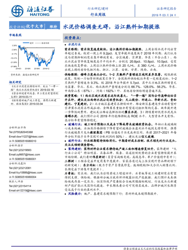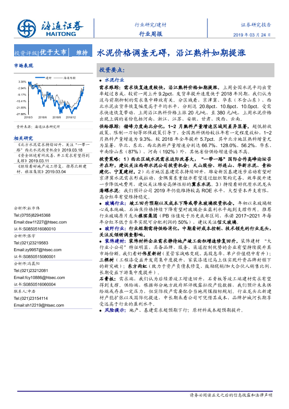 【海通证券】【20190324】建材行业周报:水泥价格调查无碍,沿江熟料如期提涨-7页