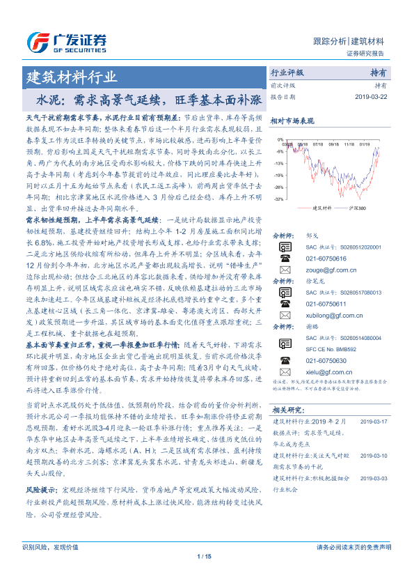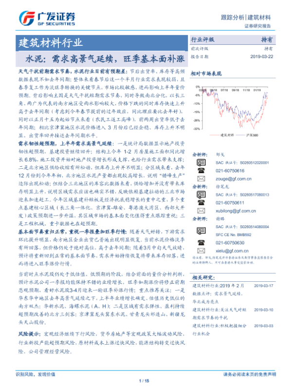 【广发证券】【20190322】水泥:需求高景气延续,旺季基本面补涨-15页