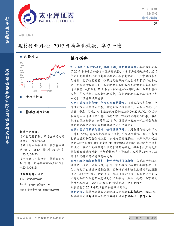 【太平洋证券】【20190331】建材行业周报:2019开局华北最强,华东平稳-21页