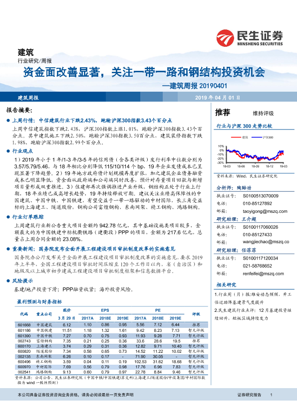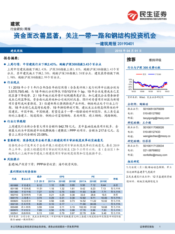 【民生证券】【20190401】建筑周报:资金面改善显著,关注一带一路和钢结构投资机会-15页