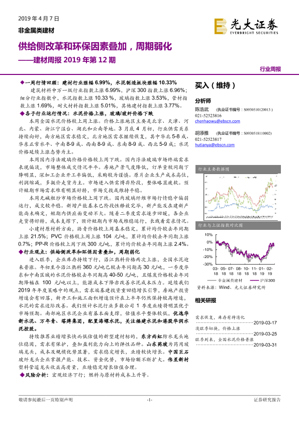 【光大证券】【20190407】建材周报2019年第12期:供给侧改革和环保因素叠加,周期弱化-16页