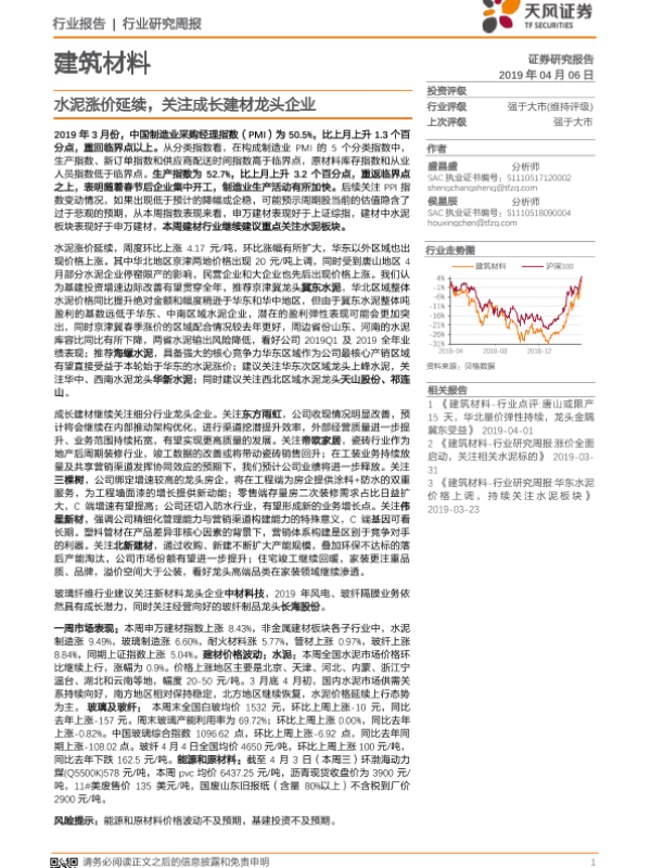 【天风证券】【20190406】建筑材料行业研究周报:水泥涨价延续,关注成长建材龙头企业-12页